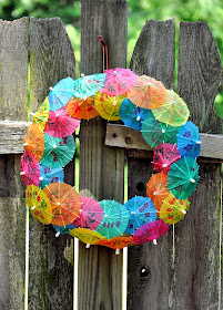 I had come across a pretty awesome drink umbrella wreath on Pinterest compliments of Spoonful and knew I wanted to give this a try one day. Then, I had found out my hubby's cousin was having a luau themed graduation party and this was my perfect excuse to give this a try.